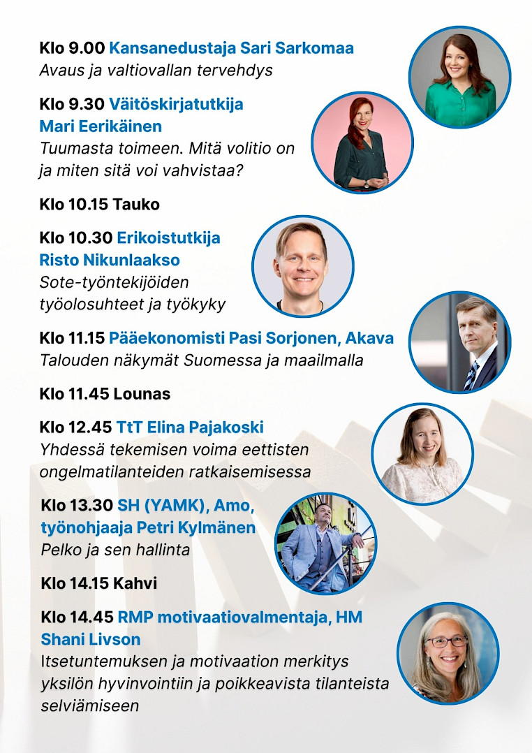 Jos et pääsekään osallistumaan: peruminen taja@toimisto.fi. Veloitus ilmoittamatta jätetyistä peruutuksista.